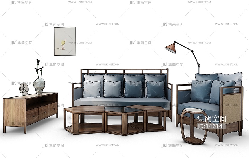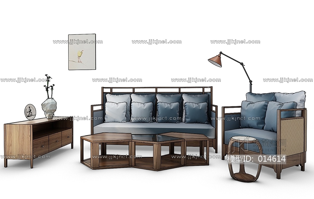 Z31-1205新中式沙发茶几组合鼓凳 3d模型下载 [模型ID:14614]