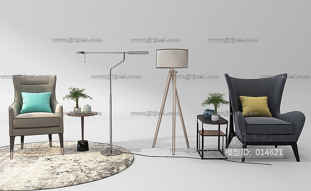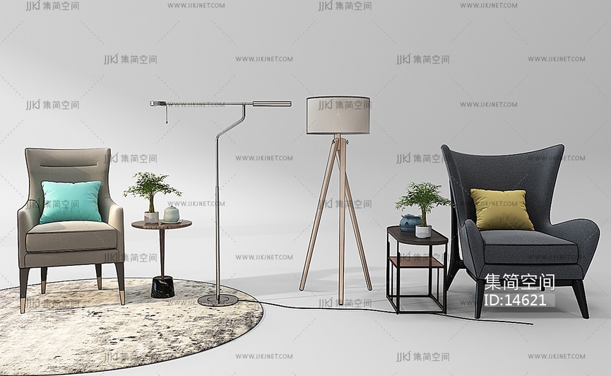 Z40-1205北欧休闲椅休闲沙发圆几边几组合 3d模型下载 [模型ID:14621]