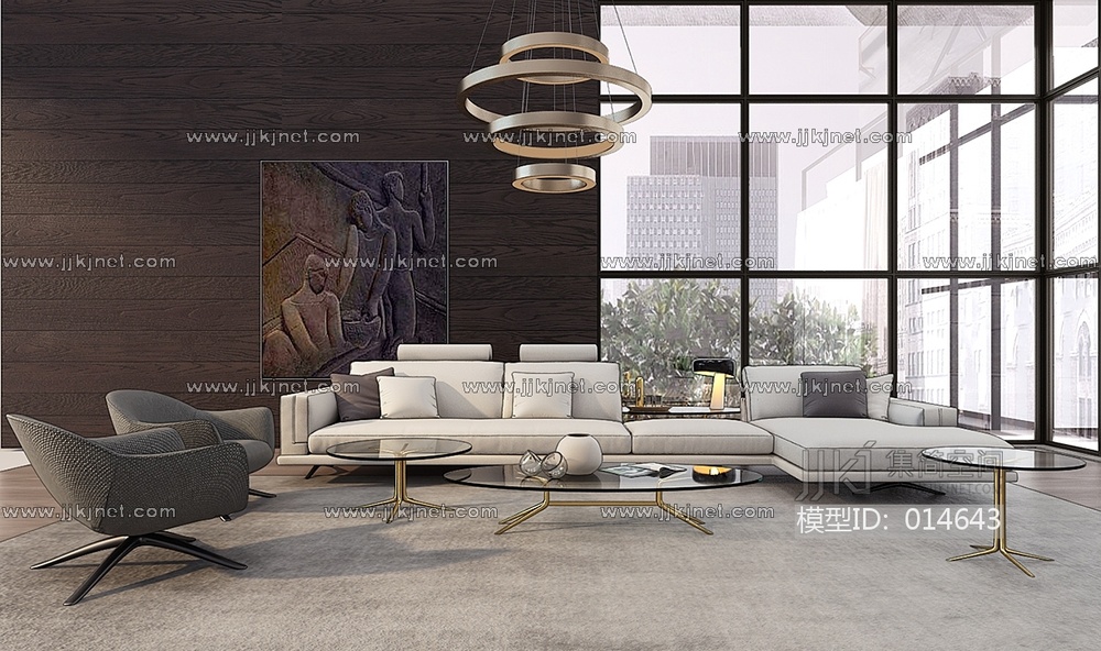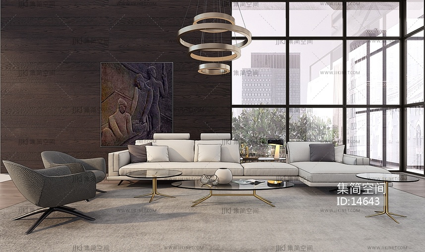 Z19-1206现代沙发茶几组合吊灯 3d模型下载 [模型ID:14643]