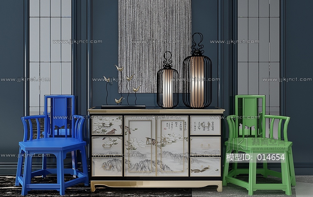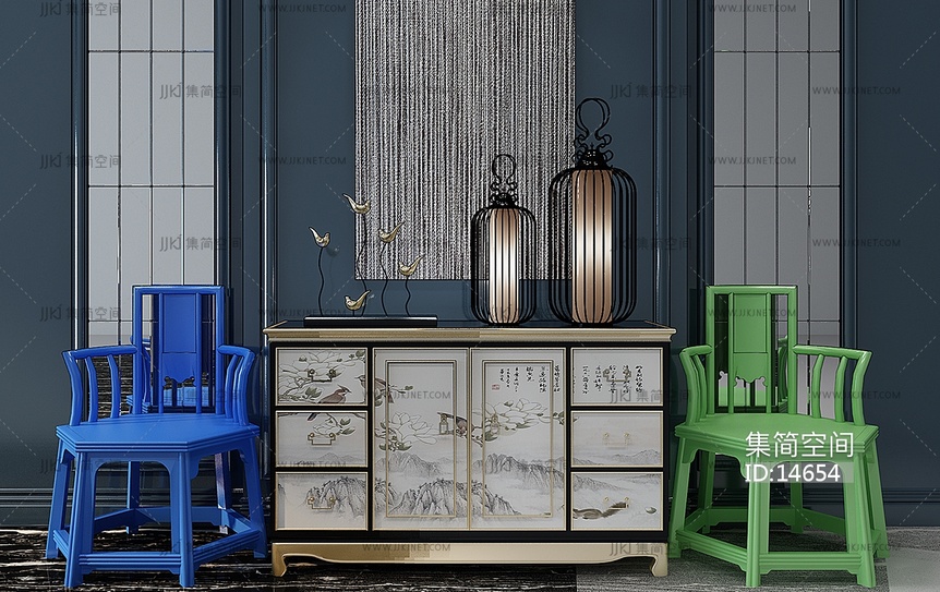 Z05-1209新中式装饰柜单人椅边柜玄关柜 3d模型下载 [模型ID:14654]