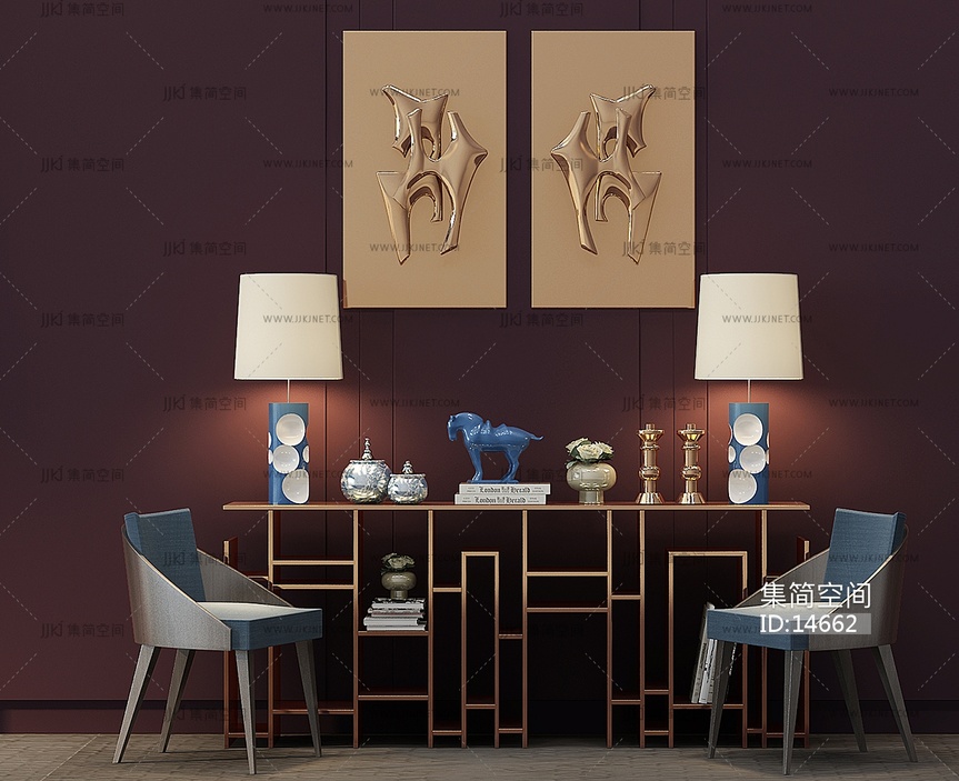美式玄关柜摆台装饰画3D模型下载3d模型下载