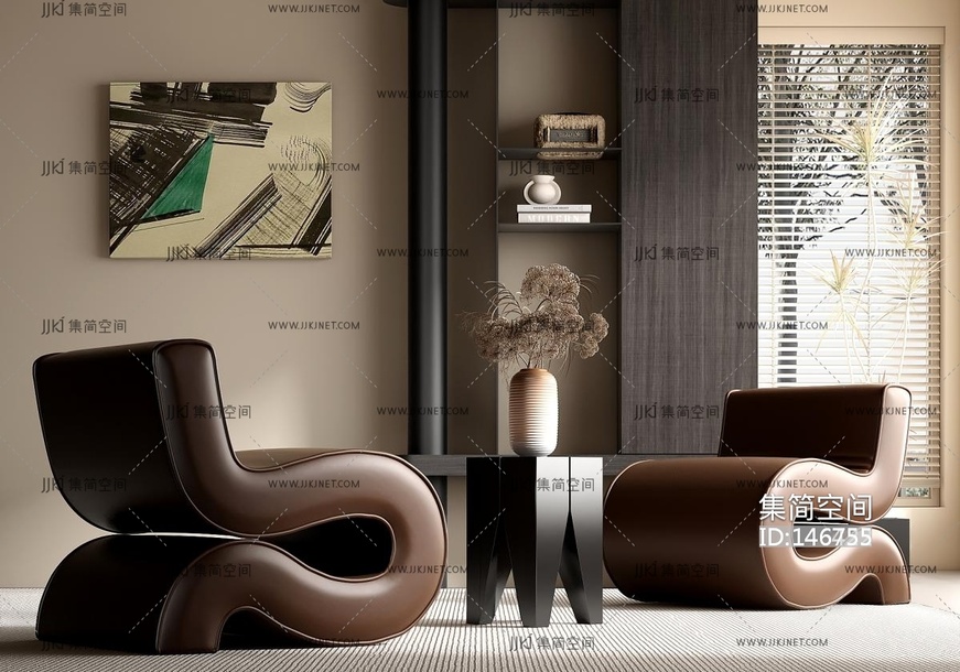 客厅单人沙发茶几摆件挂画组合 3d模型下载 [模型ID:146755]