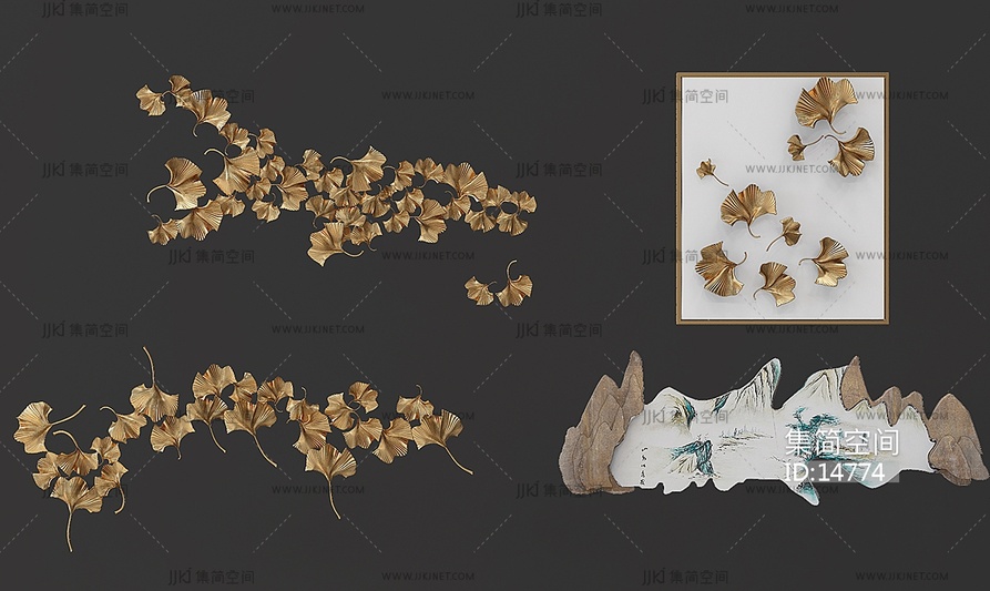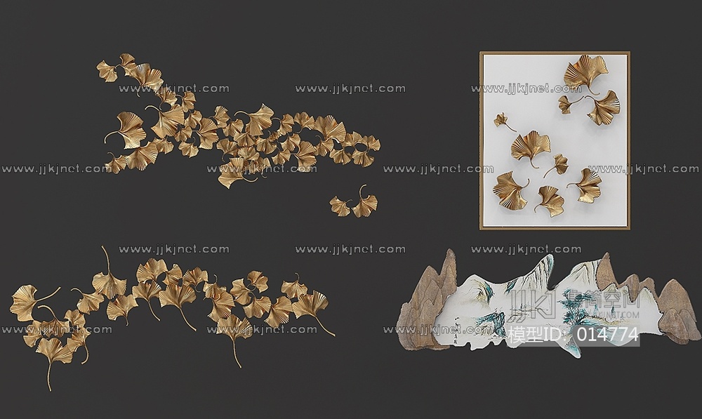 Z31-1213新中式挂饰挂件银杏叶 3d模型下载 [模型ID:14774]