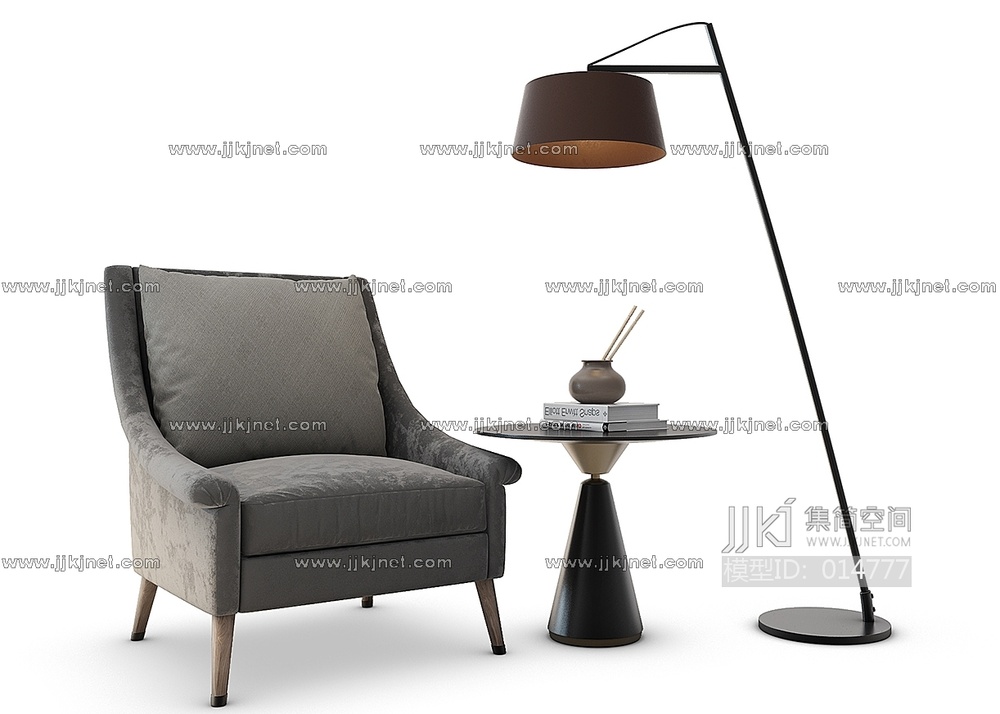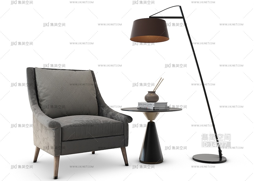 Z35-1213北欧休闲沙发圆几边几落地灯 3d模型下载 [模型ID:14777]