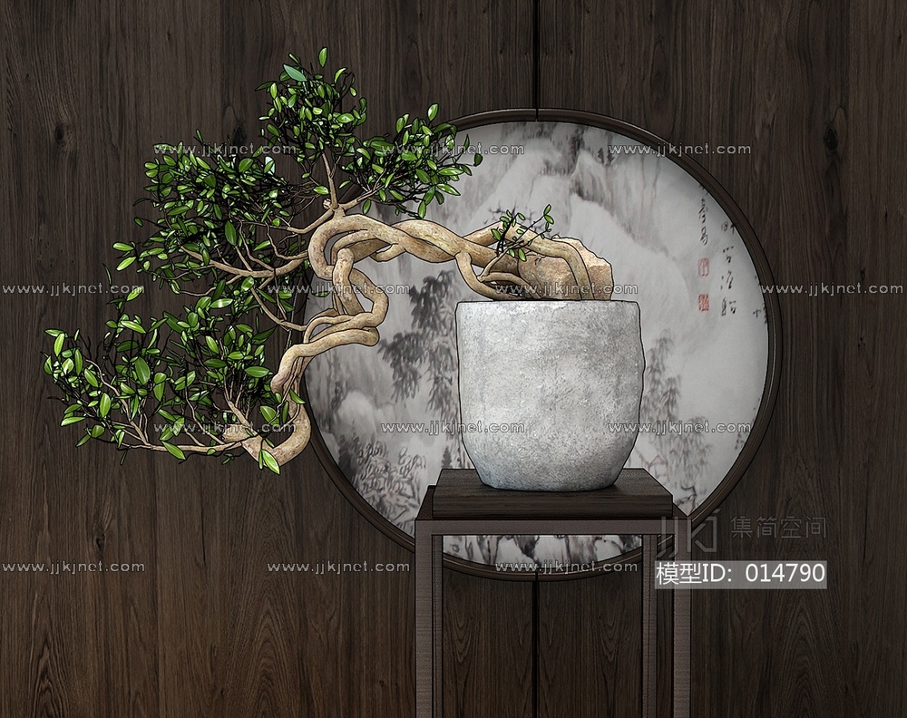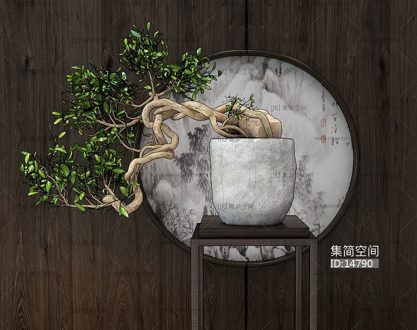 Z11-1214中式植物花架盆景 3d模型下载 [模型ID:14790]