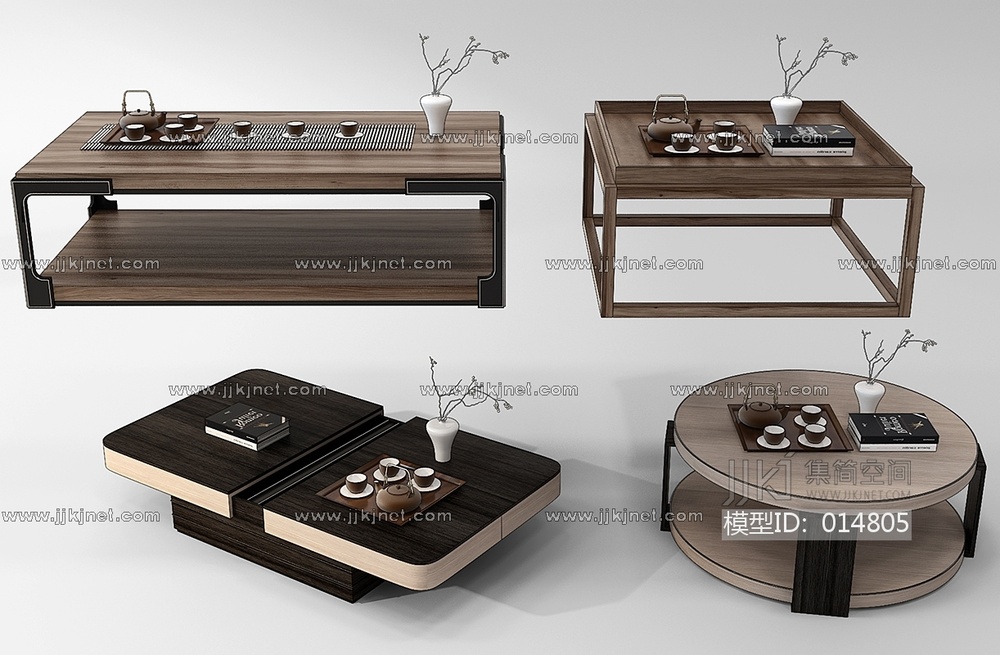 Z12-1214新中式茶几茶具组合 3d模型下载 [模型ID:14805]