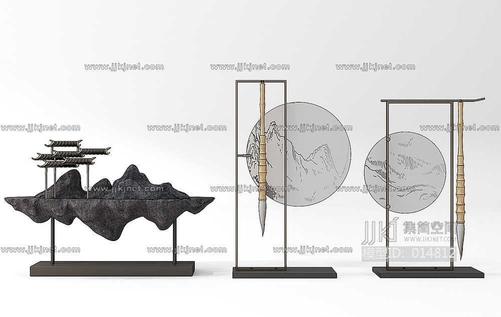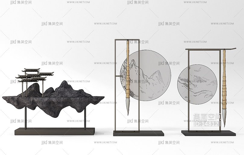 Z13-1214中式笔架摆件组合 3d模型下载 [模型ID:14812]