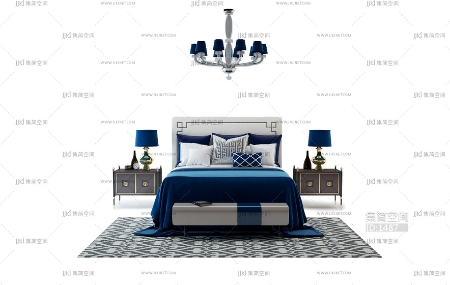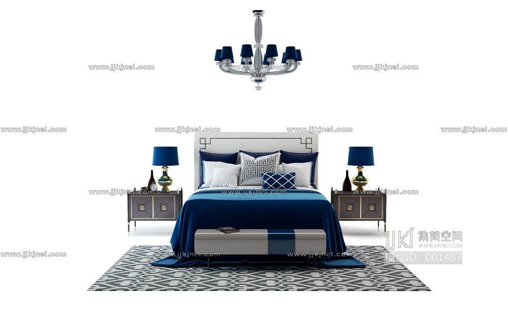01-27现代中式床 3d模型下载 [模型ID:1487]