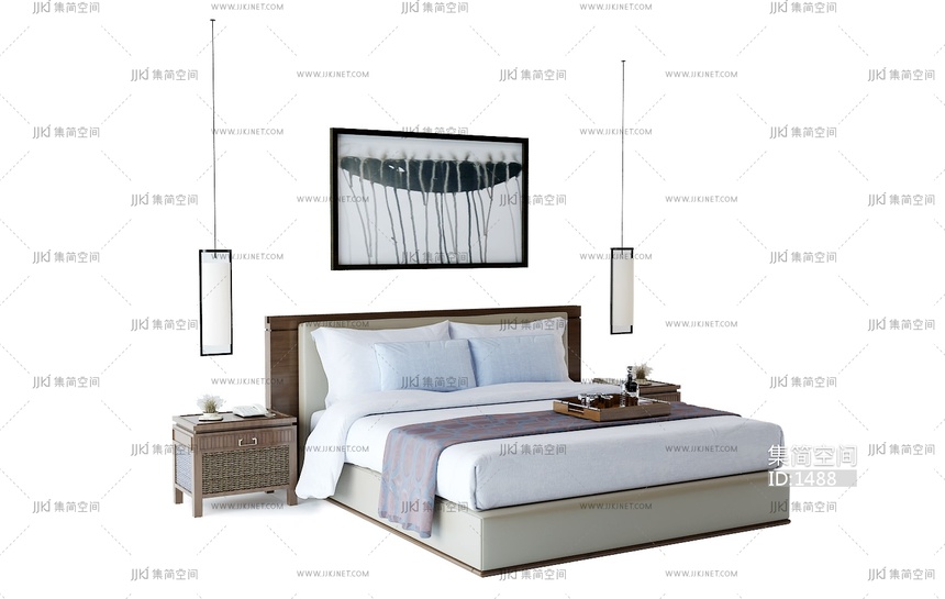 02-27现代中式床 3d模型下载 [模型ID:1488]