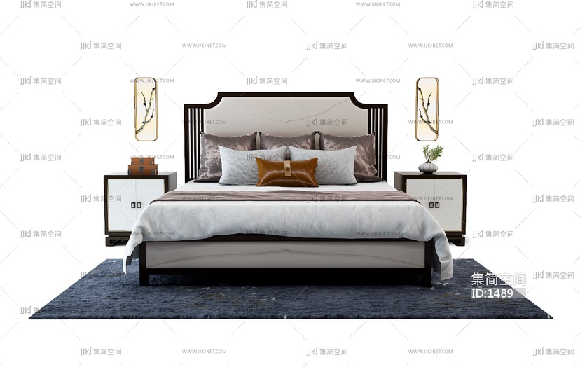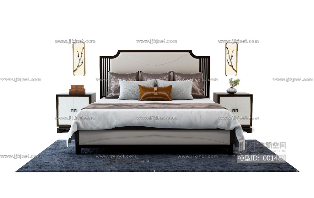 03-27现代中式床 3d模型下载 [模型ID:1489]
