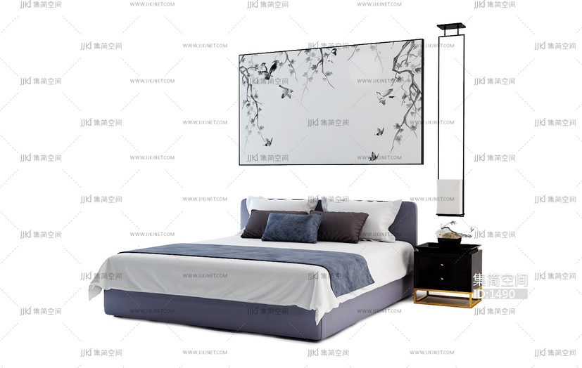 26-现代双人床_主卧床_布艺床3D模型93d模型下载