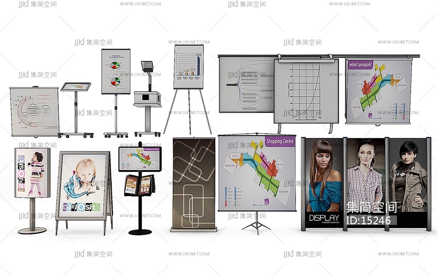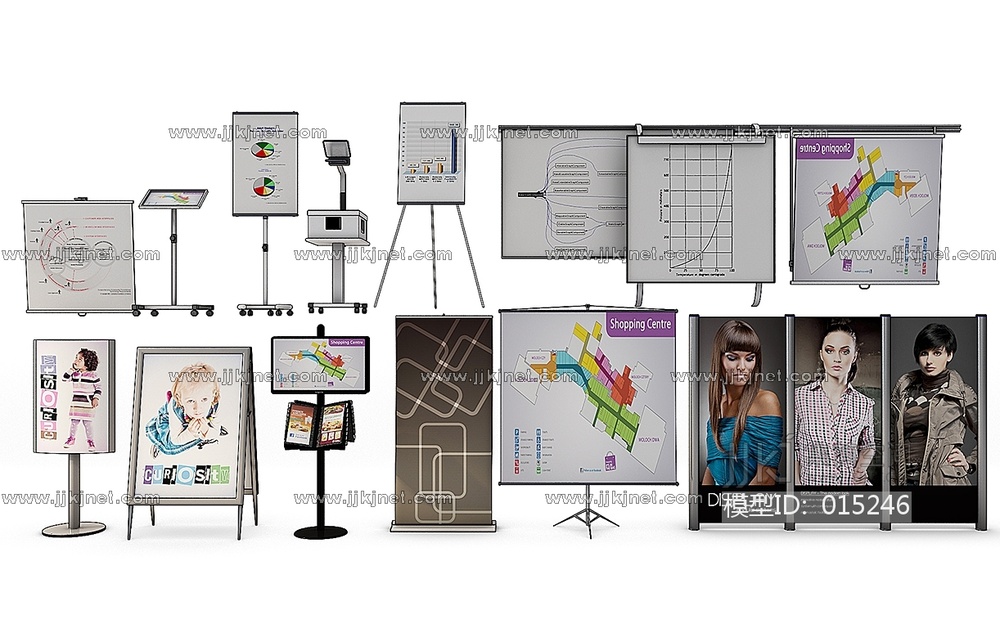 Z04-1218现代广告架资料架投影幕会议白板 3d模型下载 [模型ID:15246]