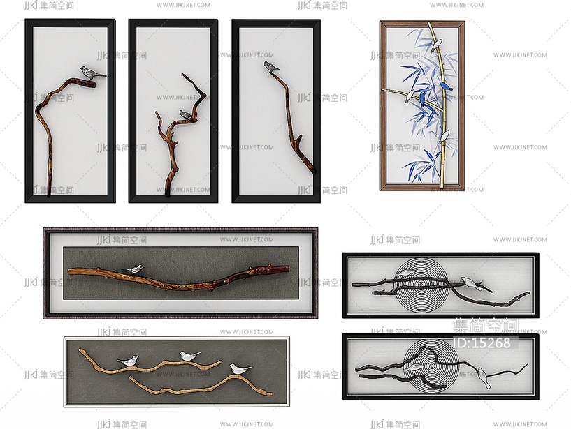 Z31-1218新中式小鸟枯枝立体装饰画组合 3d模型下载 [模型ID:15268]