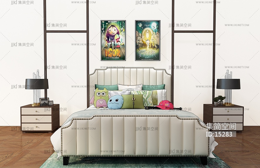 现代布艺双人床3d模型下载