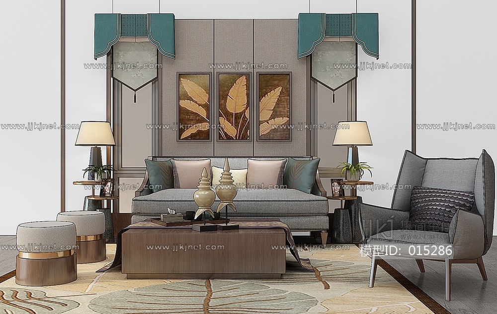 Z11-1221东南亚泰式沙发茶几台灯装饰画 3d模型下载 [模型ID:15286]