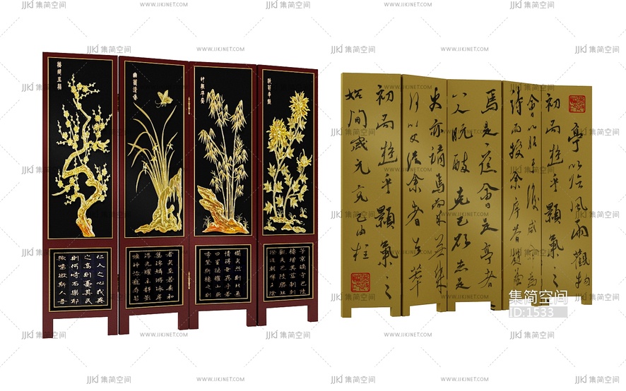 91-1中式屏风 3d模型下载 [模型ID:1533]