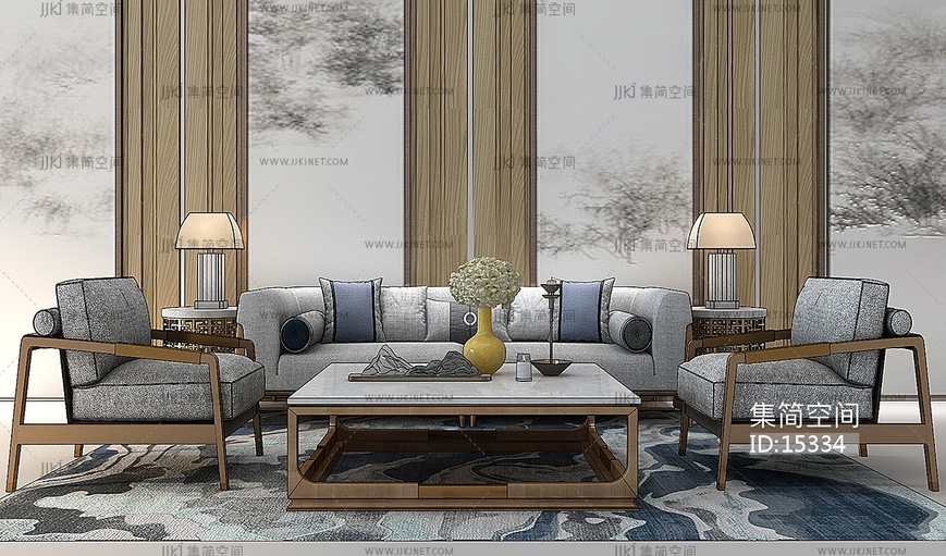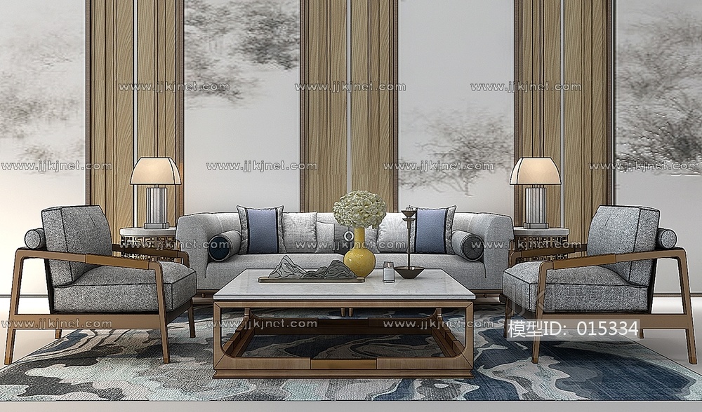 Z05-1222新中式沙发茶几台灯组合 3d模型下载 [模型ID:15334]