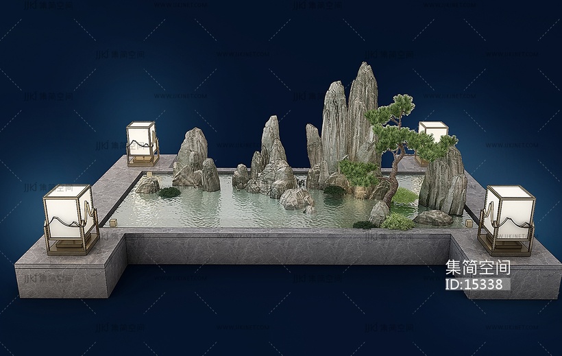 Z09-1222中式水景假山落地灯 3d模型下载 [模型ID:15338]