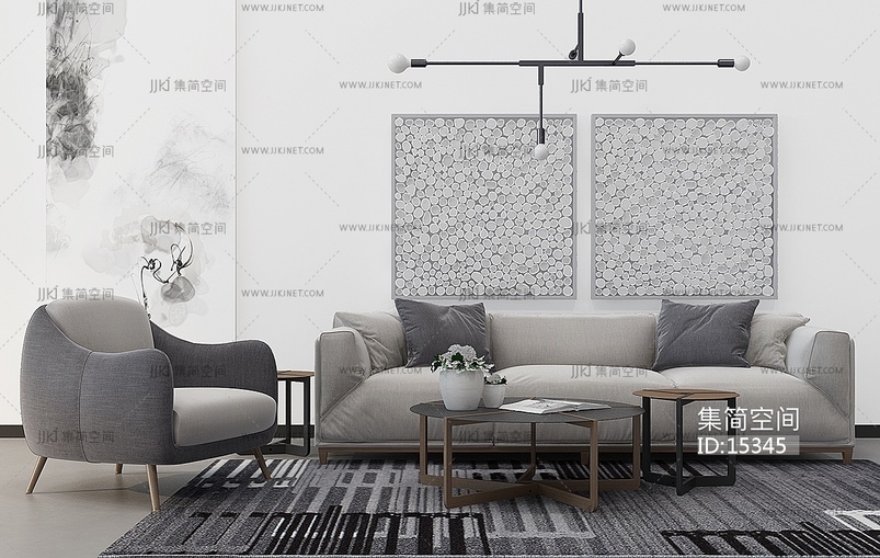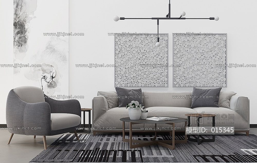 Z17-1222北欧布艺沙发茶几吊灯装饰画 3d模型下载 [模型ID:15345]