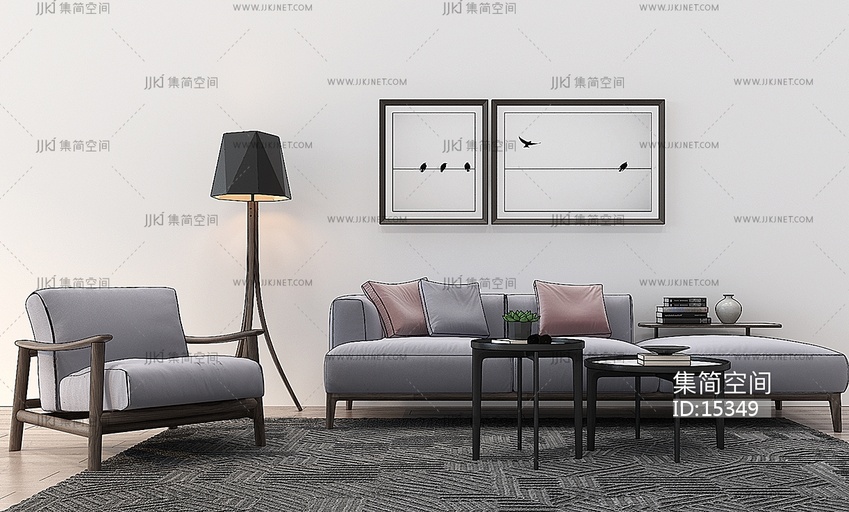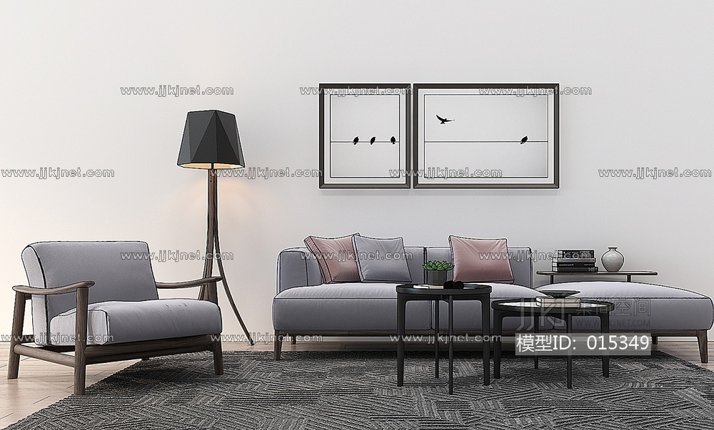 Z21-1222北欧沙发茶几落地灯组合 3d模型下载 [模型ID:15349]