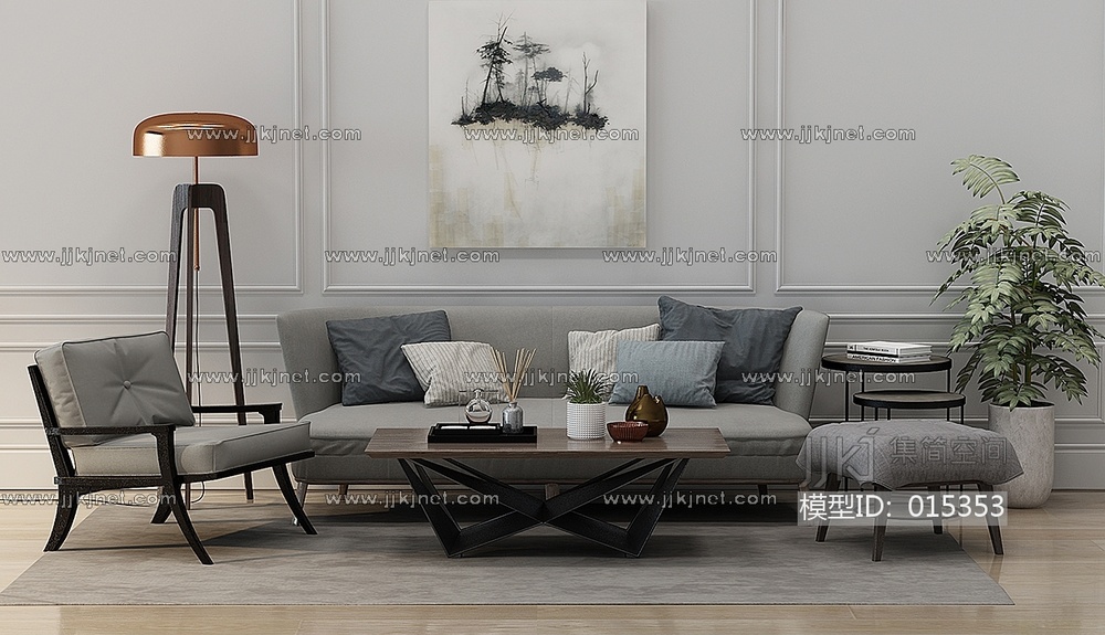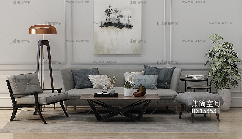 Z03-1224后现代沙发茶几落地灯盆栽植物 3d模型下载 [模型ID:15353]