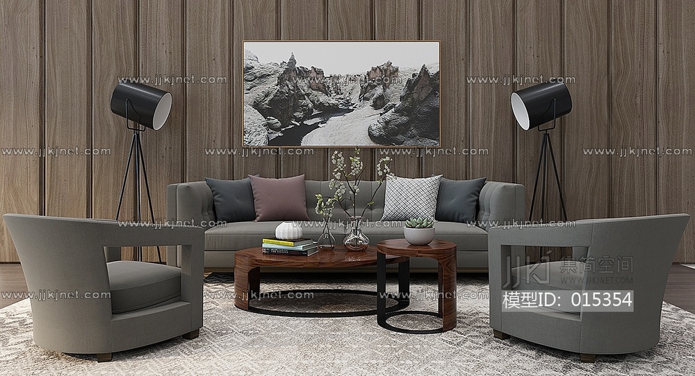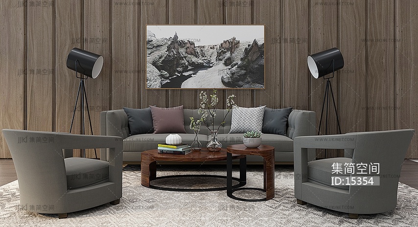 Z04-1224现代沙发茶几组合落地灯 3d模型下载 [模型ID:15354]