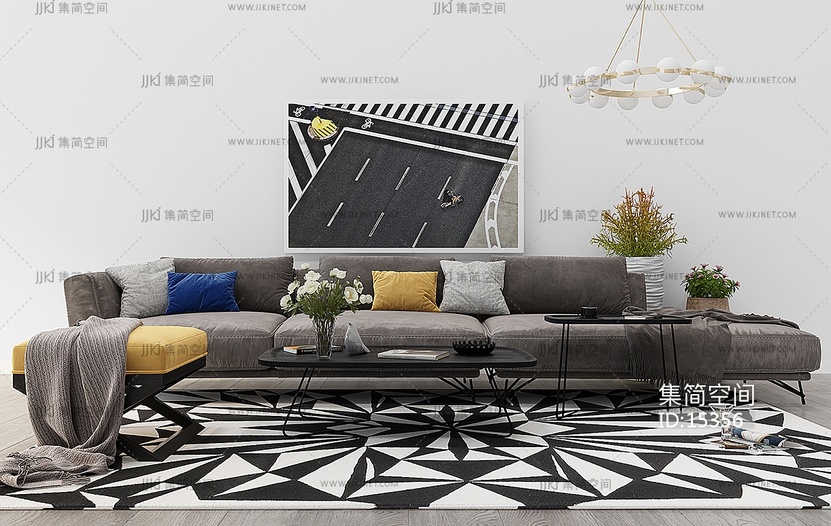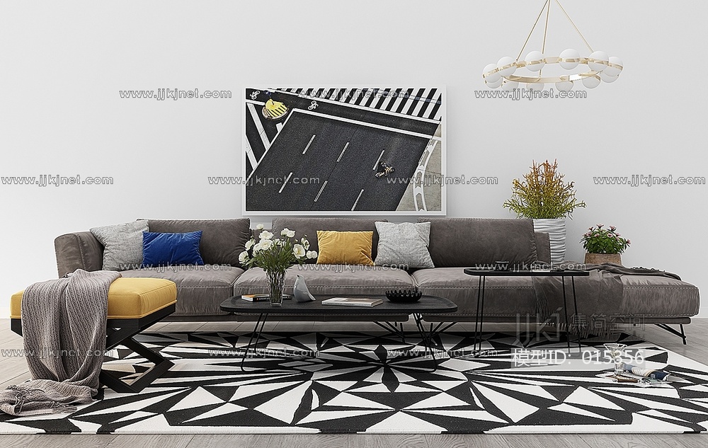 Z06-1224现代布艺沙发茶几摆件吊灯植物盆栽 3d模型下载 [模型ID:15356]
