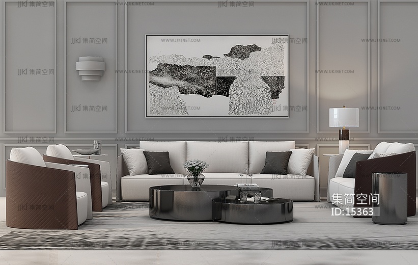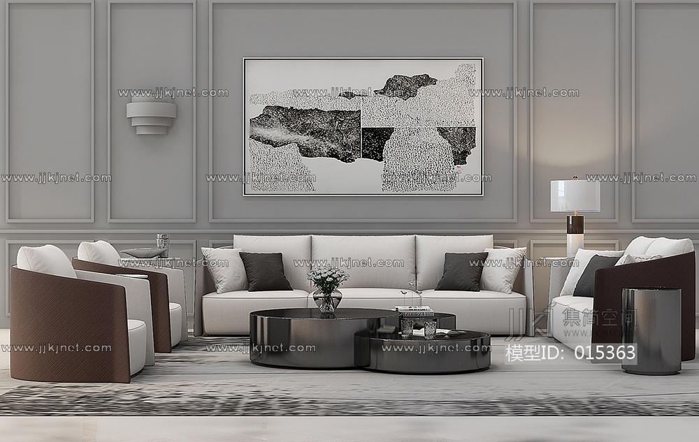 Z14-1224现代宾利沙发茶几台灯组合 3d模型下载 [模型ID:15363]