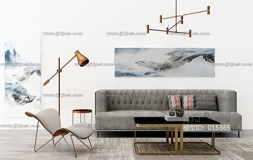 Z16-1224现代沙发茶几落地灯躺椅 3d模型下载 [模型ID:15365]