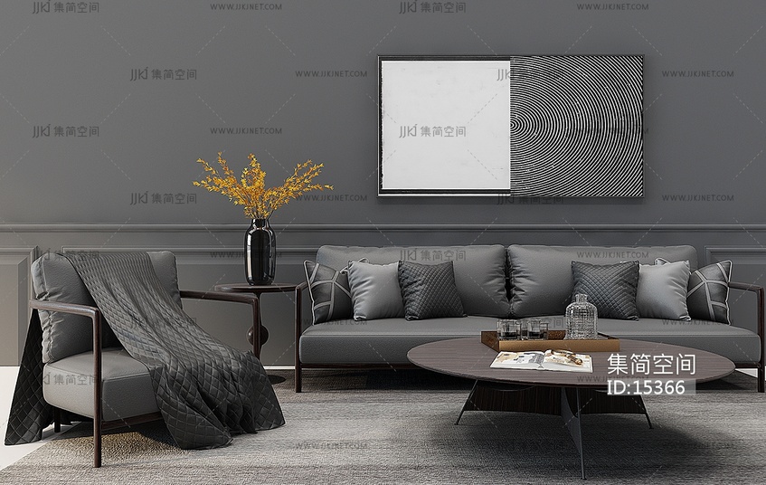 Z17-1224现代布艺沙发茶几花瓶 3d模型下载 [模型ID:15366]