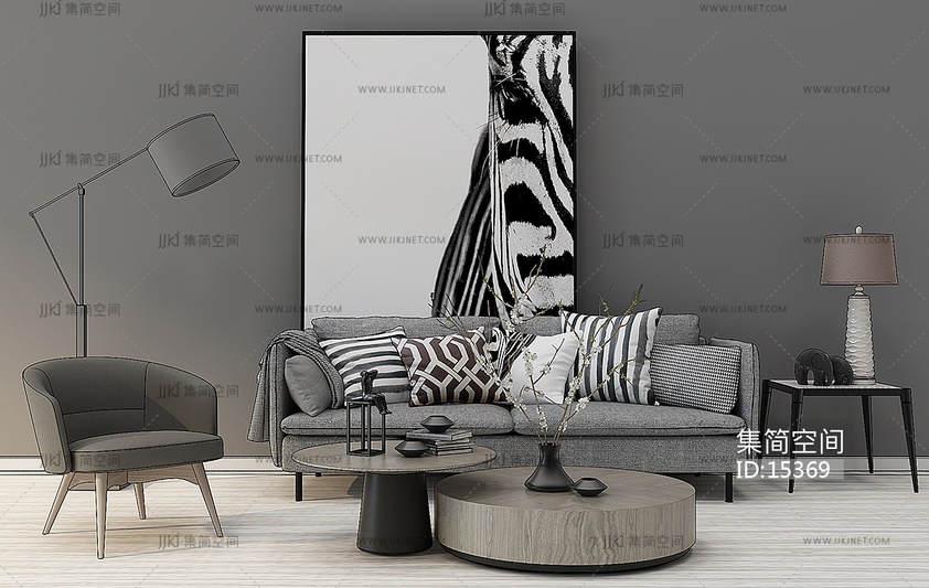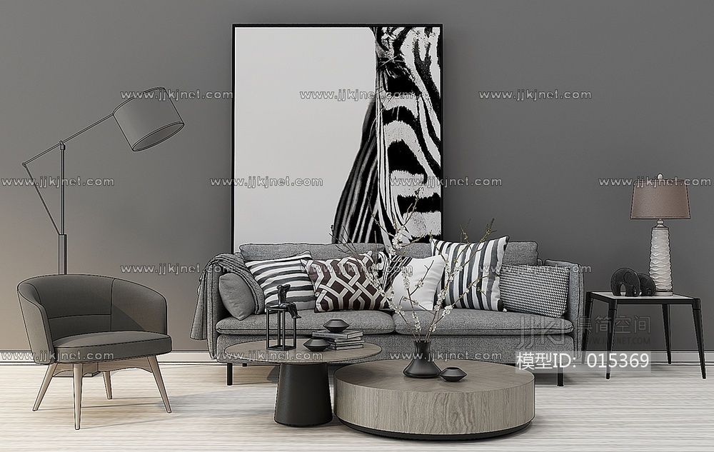 Z20-1224现代沙发茶几休闲椅几落地灯摆件组合 3d模型下载 [模型ID:15369]