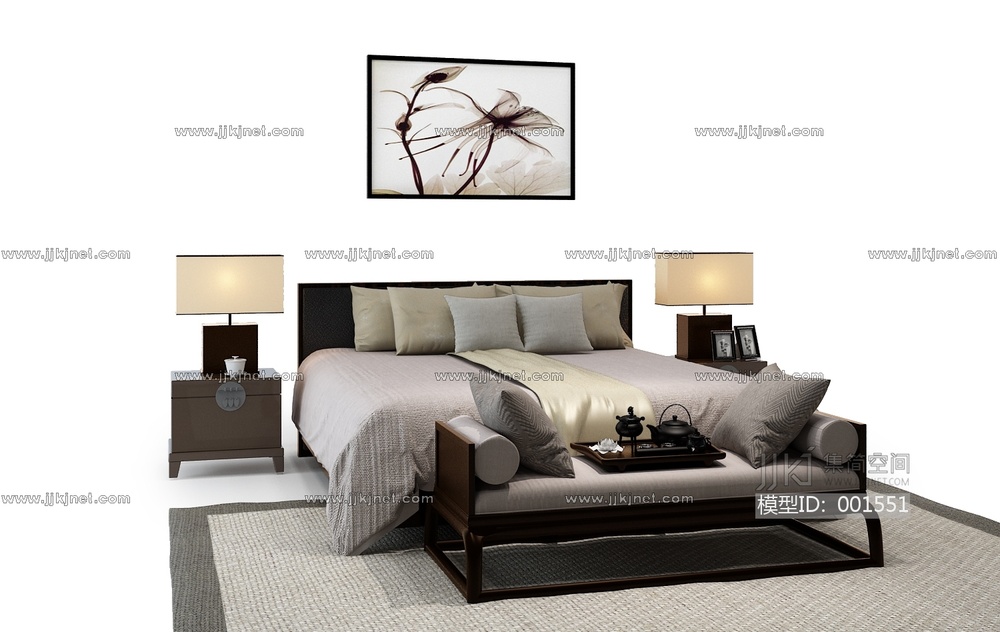 中式床01-29-06 3d模型下载 [模型ID:1551]