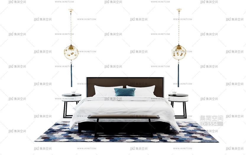 08-27新中式床 3d模型下载 [模型ID:1554]