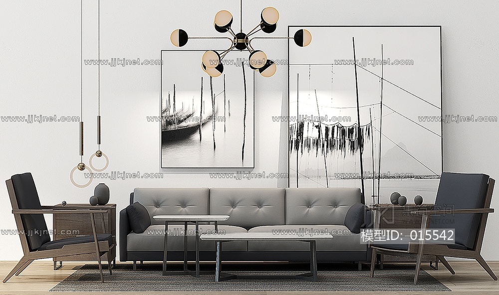 Z18-1226现代沙发组合 3d模型下载 [模型ID:15542]