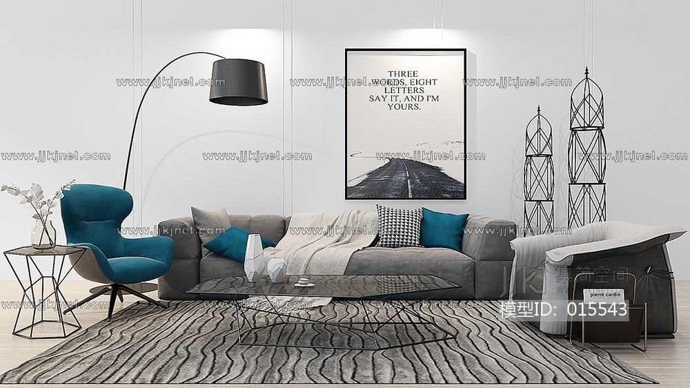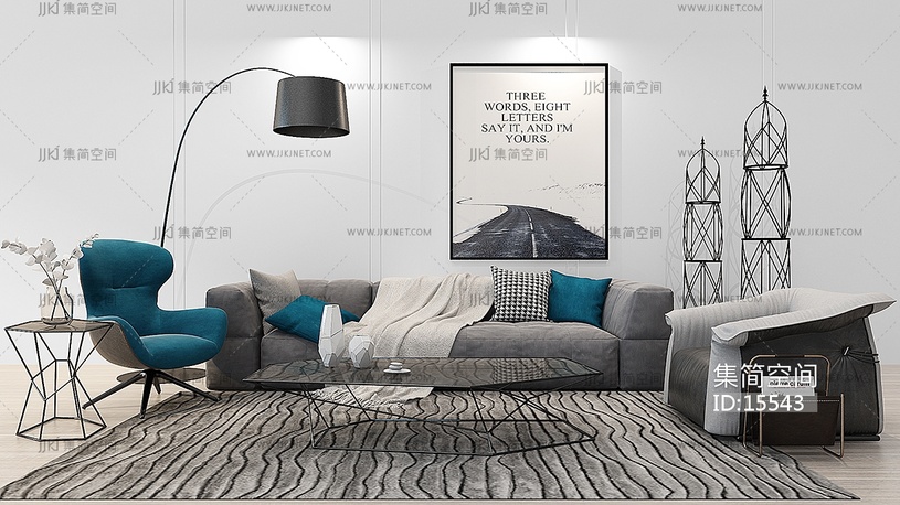 Z19-1226现代沙发茶几边几落地灯金属摆件 3d模型下载 [模型ID:15543]