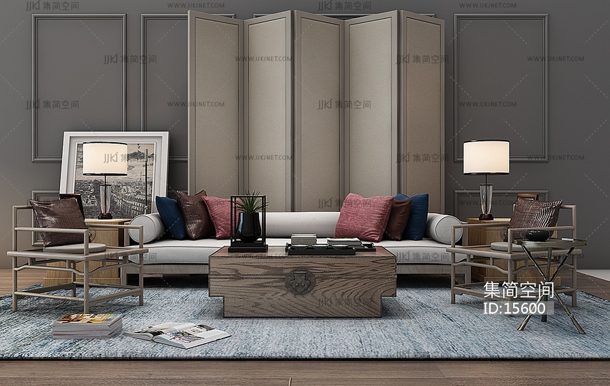 Z04-1228新中式沙发茶几椅子屏风 3d模型下载 [模型ID:15600]