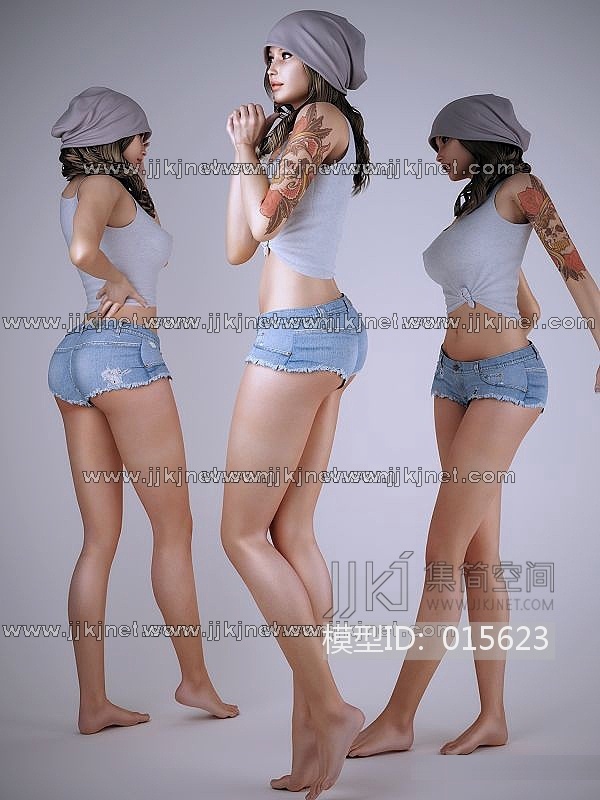 高精纹身美女写实人物模型 3d模型下载 [模型ID:15623]