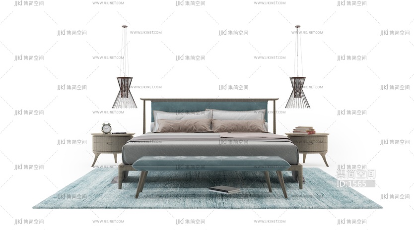 002新中式双人床 3d模型下载 [模型ID:1565]