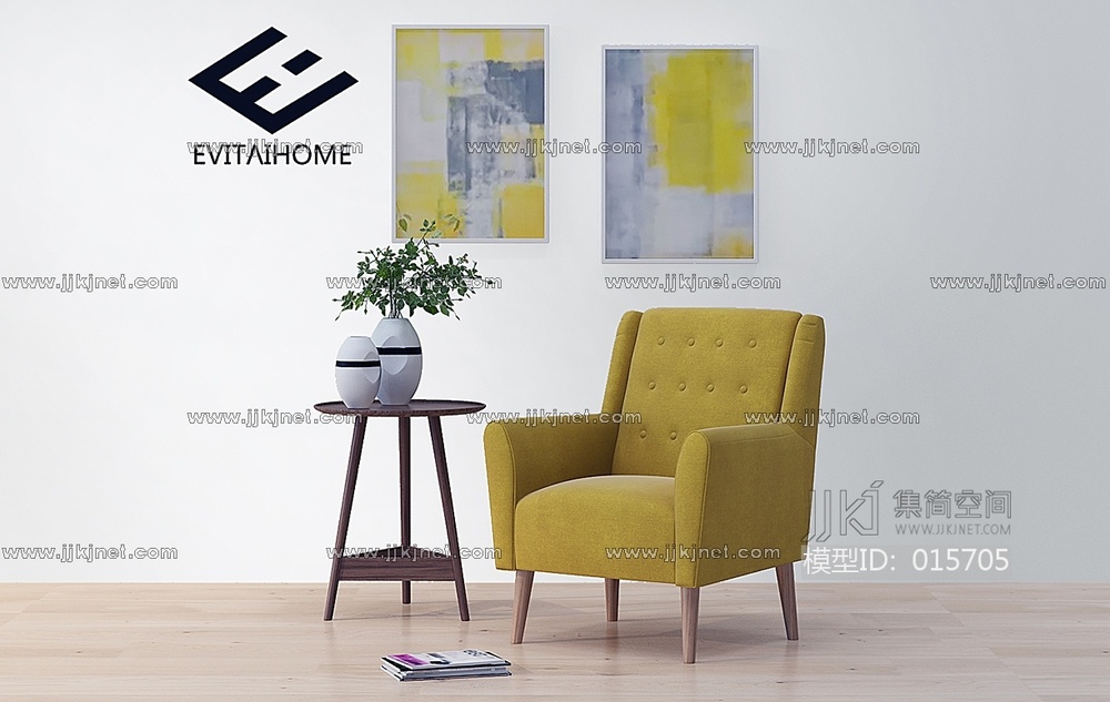 Z07-1201北欧单人沙发边几花瓶植物 3d模型下载 [模型ID:15705]