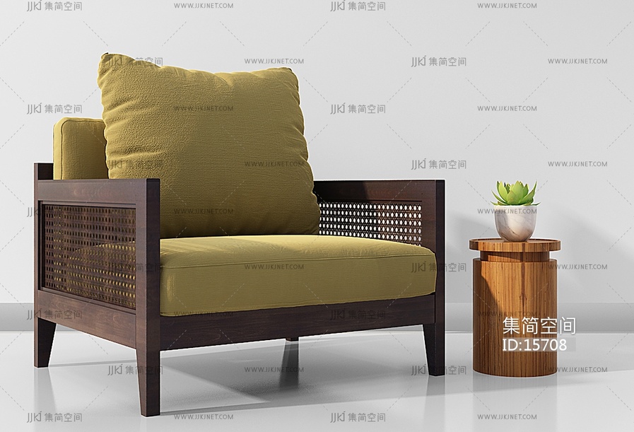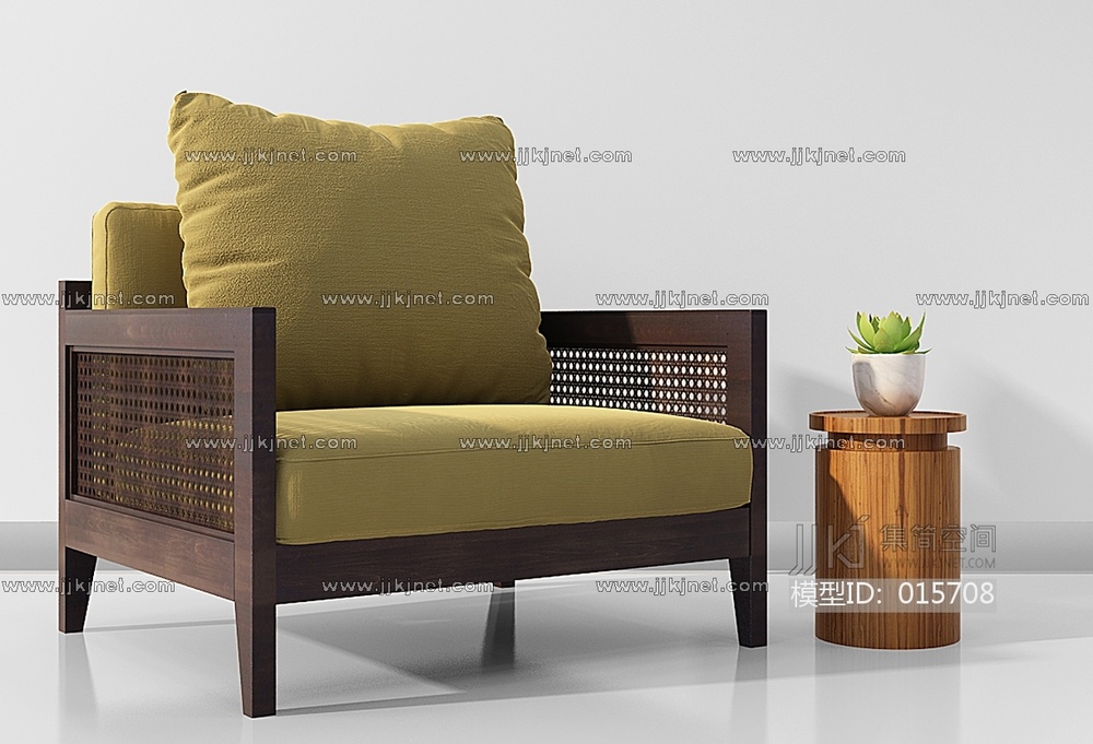Z11-1201新中式东南亚休闲椅单体沙发边几 3d模型下载 [模型ID:15708]