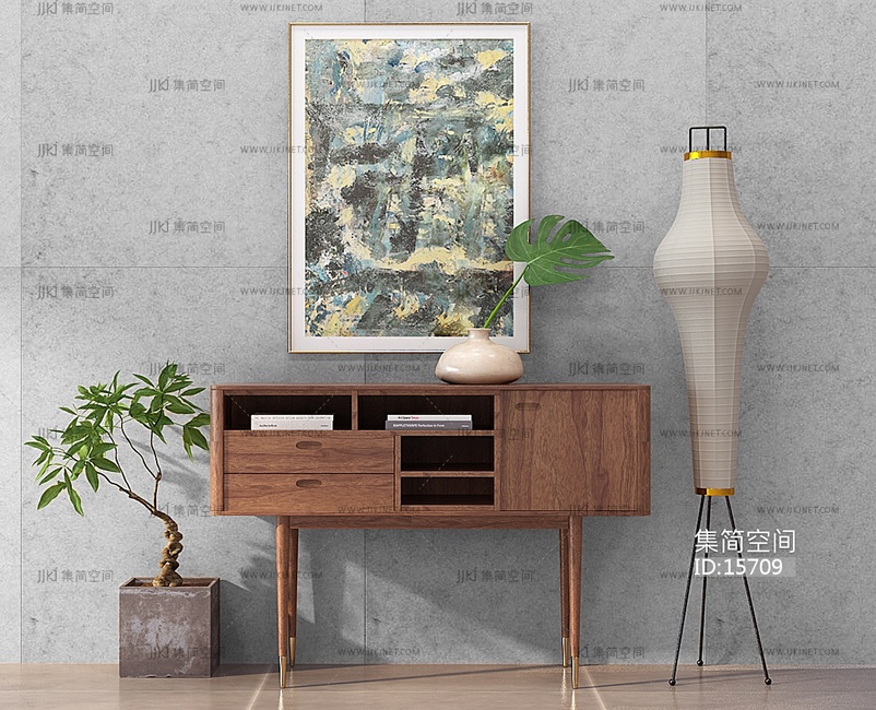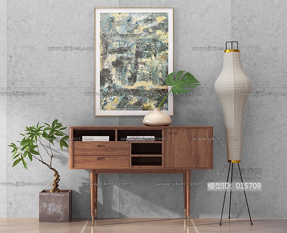 Z12-1201现代玄关柜装饰柜绿植盆栽落地灯组合 3d模型下载 [模型ID:15709]