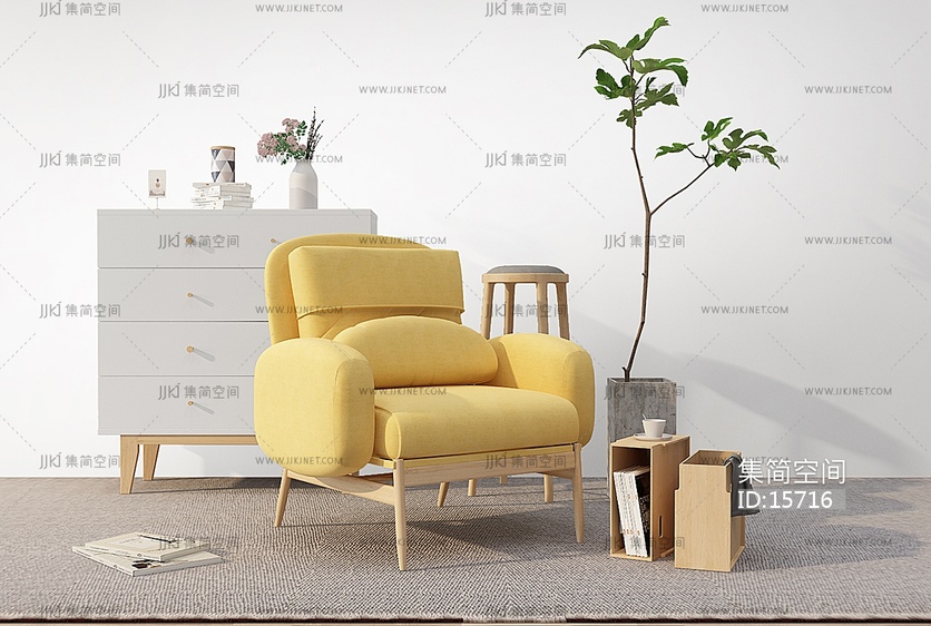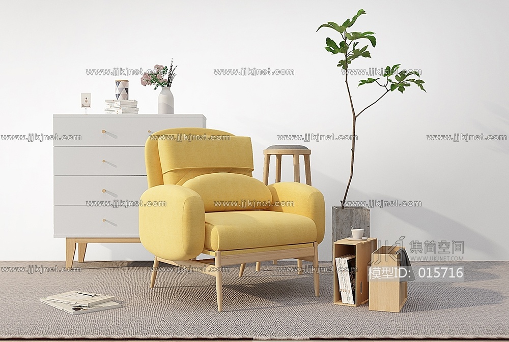 Z21-1201北欧单人沙发边几绿植组合 3d模型下载 [模型ID:15716]