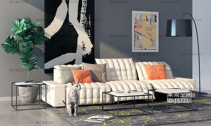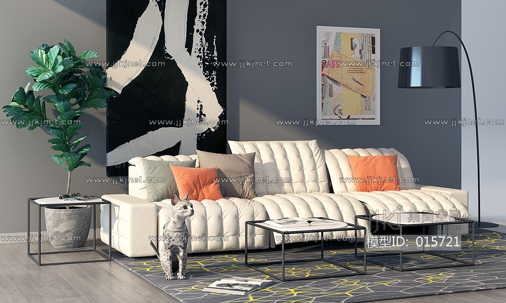 Z37-1201北欧现代沙发茶几植物落地灯宠物猫 3d模型下载 [模型ID:15721]