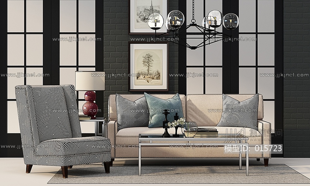 Z42-1201美式沙发茶几台灯吊灯 3d模型下载 [模型ID:15723]