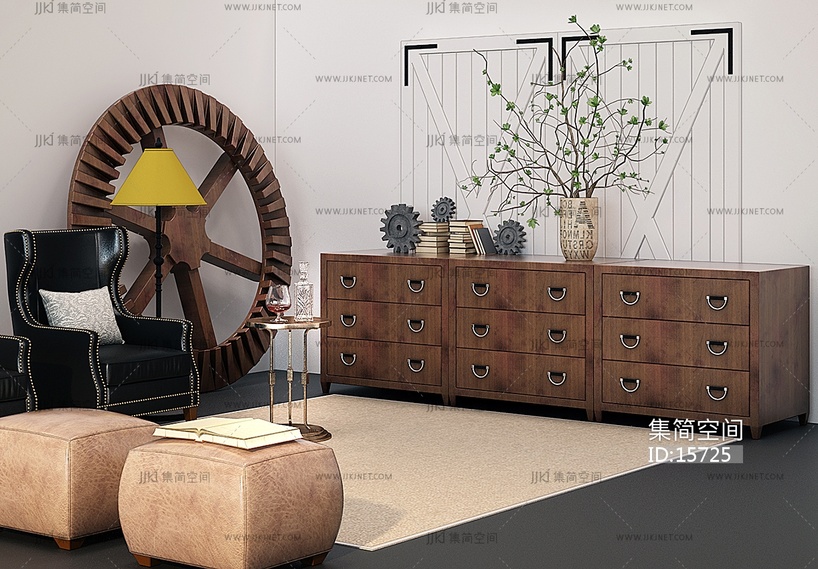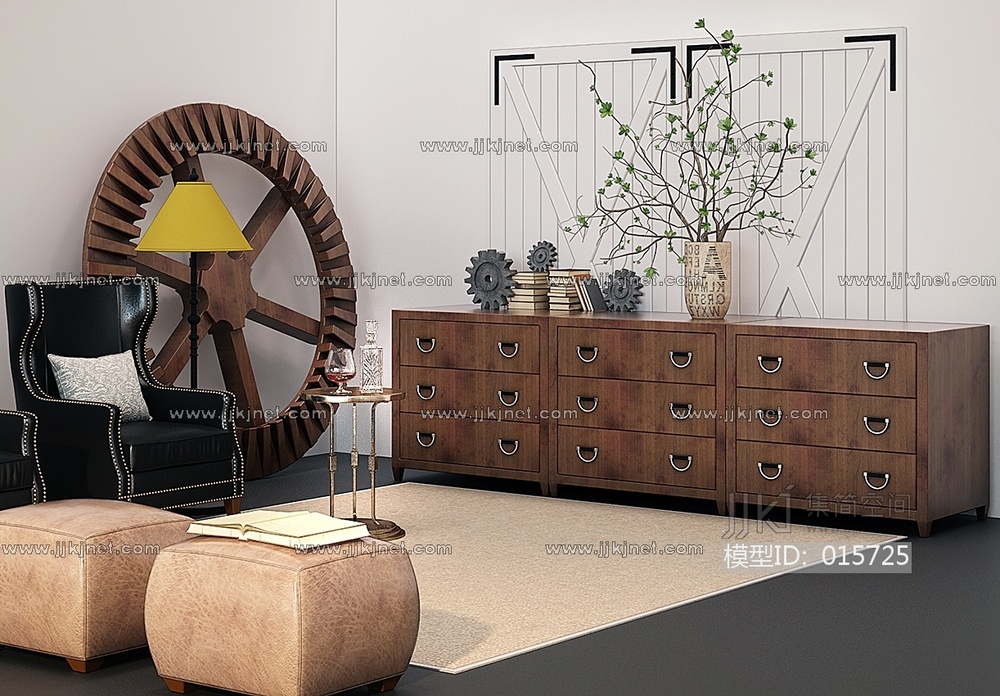 Z44-1201美式边柜电视柜边几花瓶 3d模型下载 [模型ID:15725]
