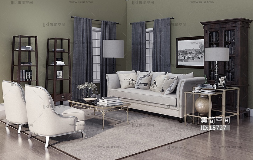 Z46-1201美式客厅美式沙发茶几边几书柜书架 3d模型下载 [模型ID:15727]