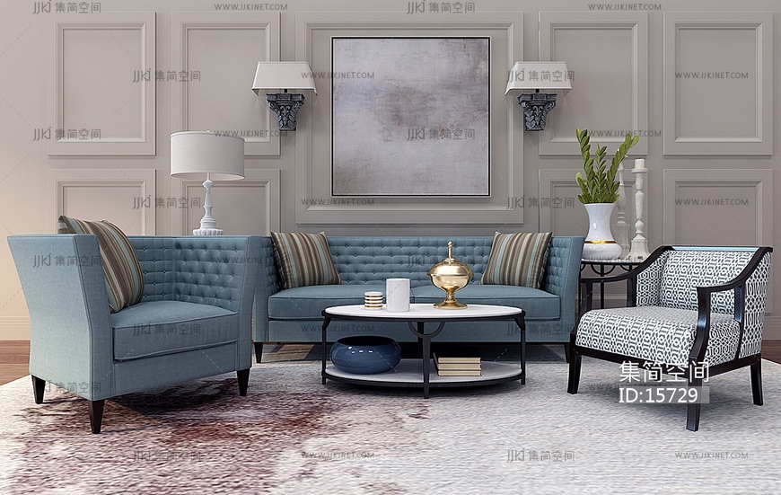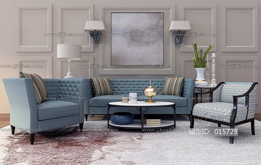 Z48-1201美式客美式沙发茶几壁灯组合 3d模型下载 [模型ID:15729]