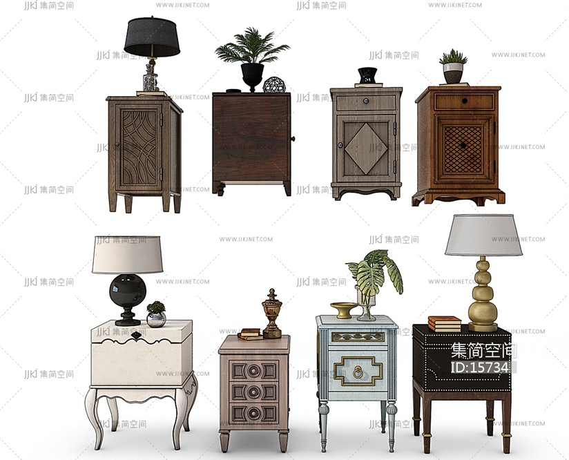 简欧床头柜,美式床头柜,3D模型3d模型下载