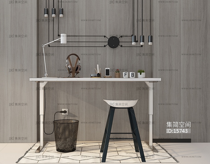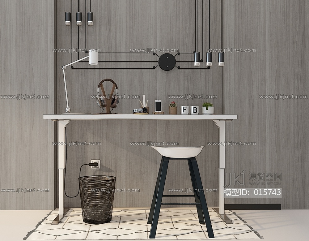 Z66-1201现代北欧写字台书桌耳麦垃圾篓 3d模型下载 [模型ID:15743]