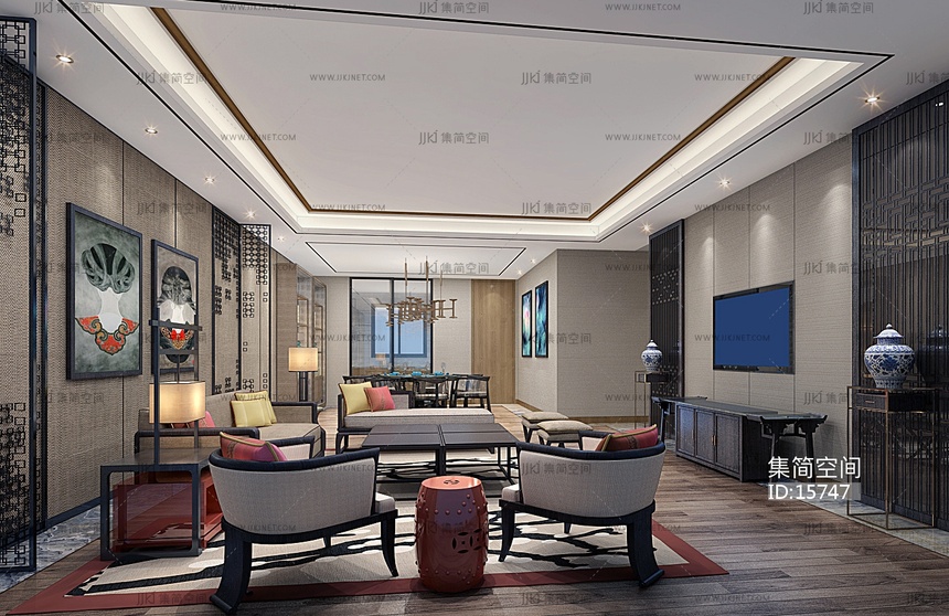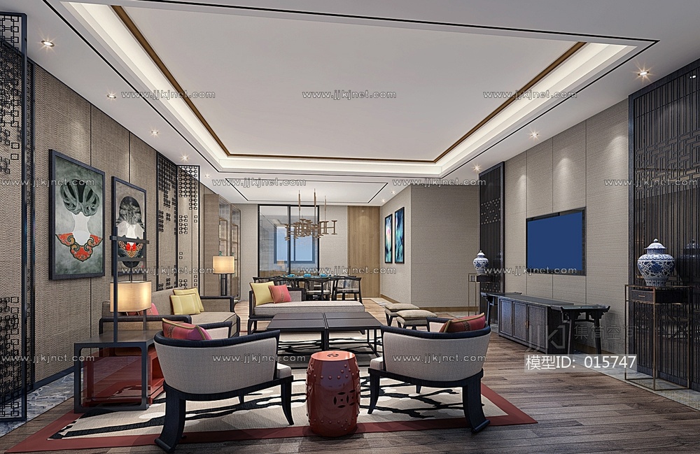 Z02-0107现代中式新中式客厅新中式沙发茶几将军罐 3d模型下载 [模型ID:15747]